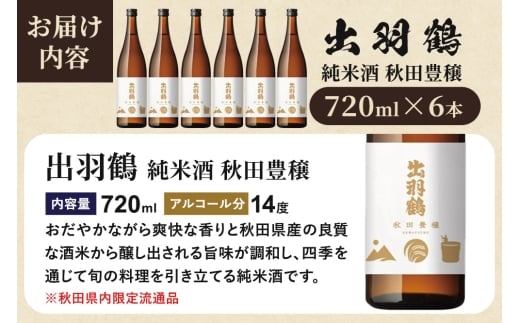 出羽鶴 純米酒 秋田豊穣 720ml 6本セット 秋田県 大仙市