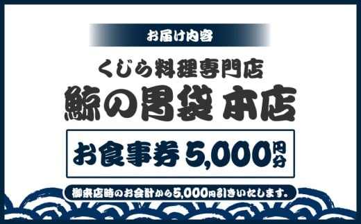 - ―捕鯨船直送―くじら料理専門店[鯨の胃袋 本店] お食事券5000円分