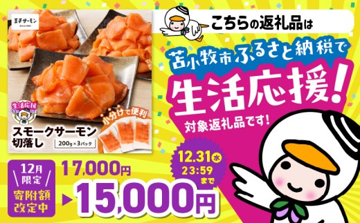- 【数量・期間限定 12/31まで 年内 寄附額改定 生活応援 特別規格】【王子サーモン】小分けで便利!スモークサーモン切落し 200g×3パック(計600g) T041-004