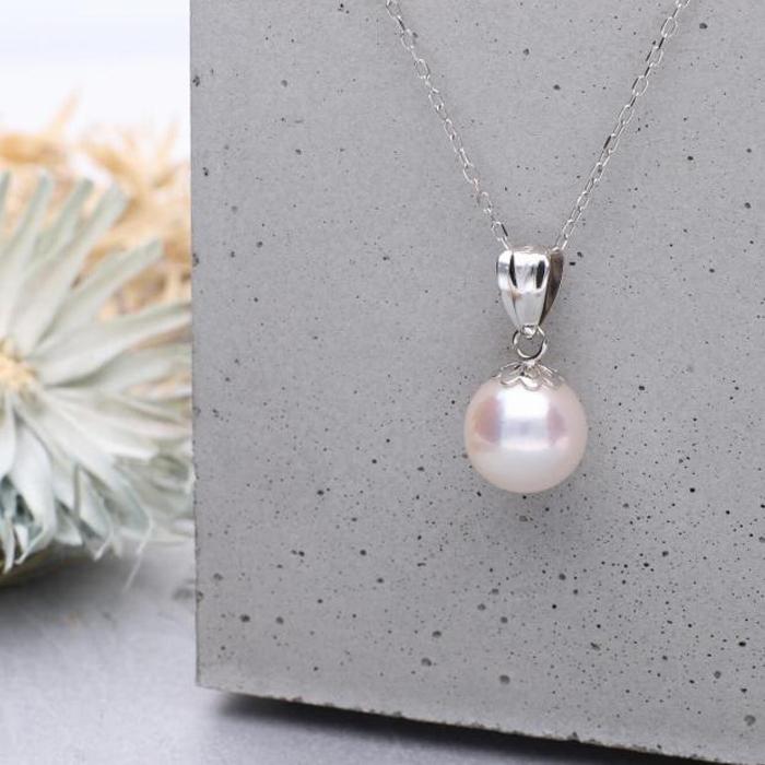 - 【菊花】 無調色 アコヤ真珠(日本) 7.0mm ラウンド K14 ホワイトゴールド ペンダントトップ