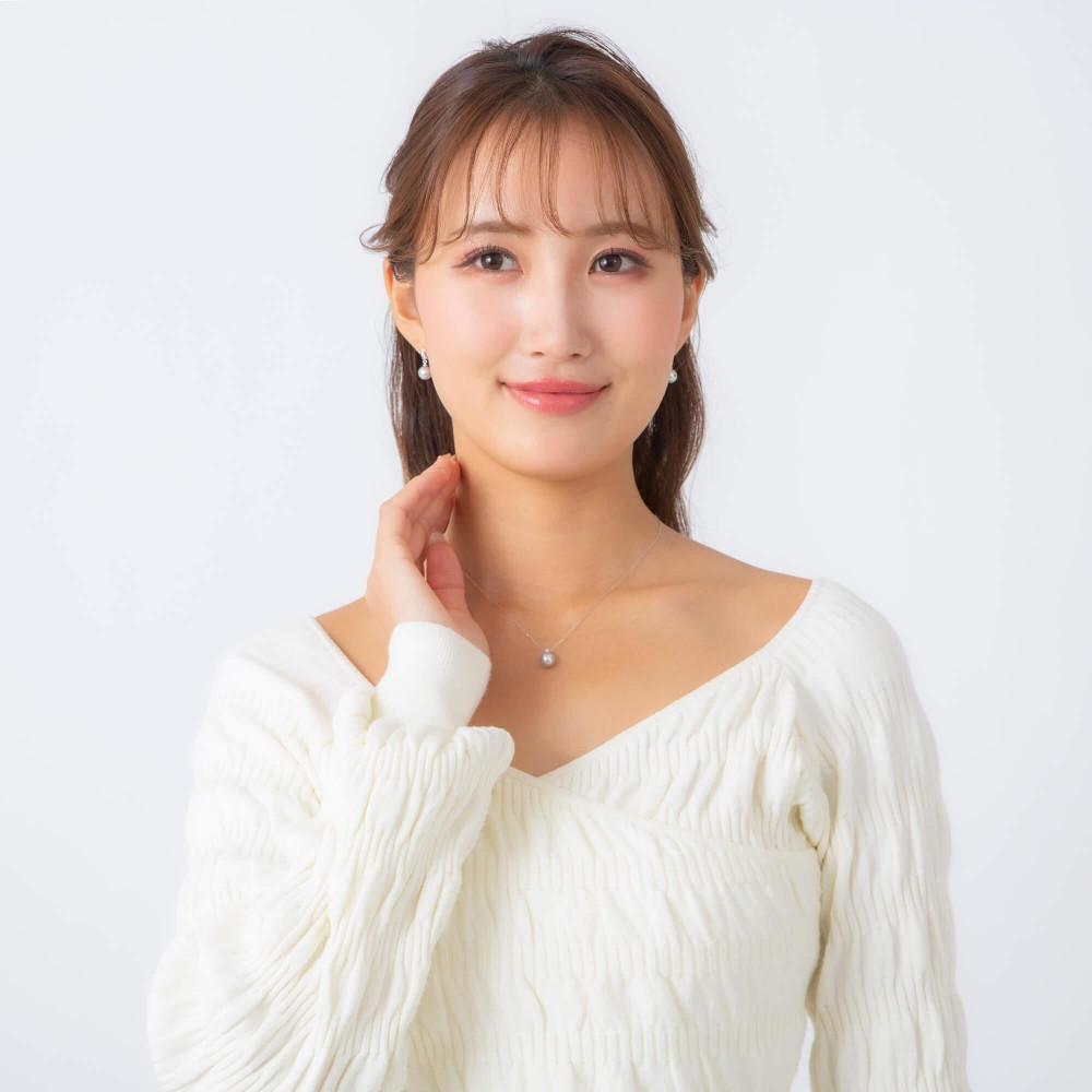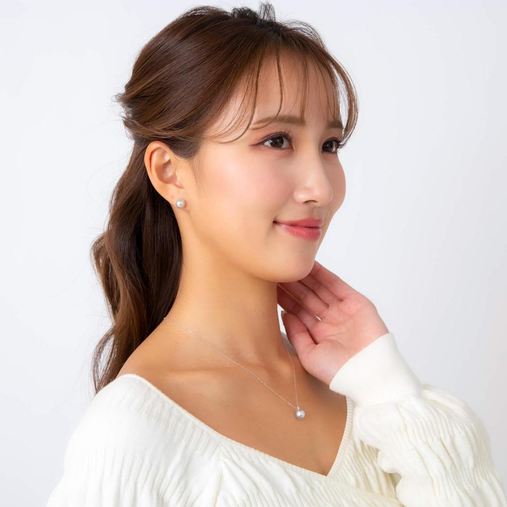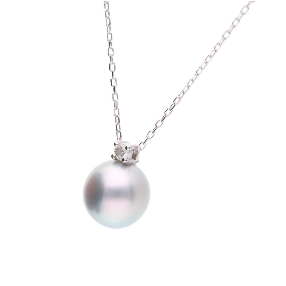 無調色 ウルトラスカイブルー アコヤ真珠(日本) 8.0mm セミラウンド ダイヤモンド Pt900 プラチナ ペンダント ネックレス(チェーン付き)