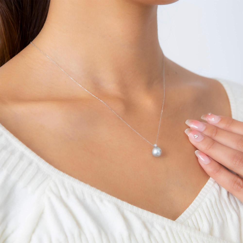 - 無調色 ウルトラスカイブルー アコヤ真珠(日本) 8.0mm セミラウンド ダイヤモンド Pt900 プラチナ ペンダント ネックレス(チェーン付き)