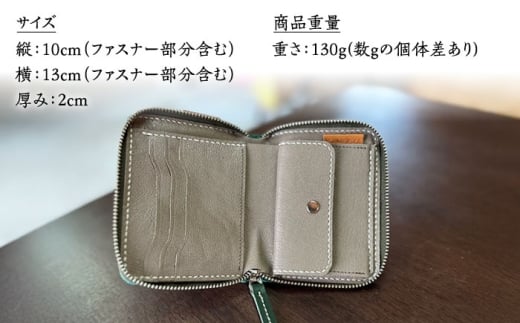 ヌメ革のミニジップウォレット ブルーグリーン[F4570]