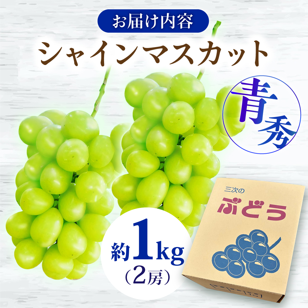 【2026年先行予約】<9月中旬から順次発送>ぶどう シャインマスカット 1kg(2房 青秀) 露地栽培 シャインマスカット マスカット 果物 フルーツ くだもの ぶどう 葡萄 三次市/西田ぶどう園 [APCM002]