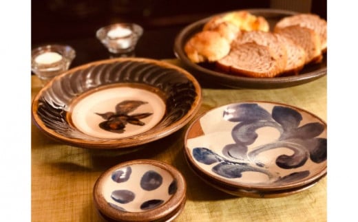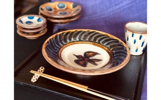 - 限定数量・予約【陶器工房 虫の音】 指描き鳥呉須7寸皿