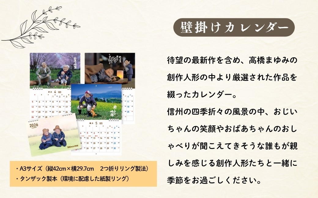 - 【数量限定】2026年版 高橋まゆみ人形館 オリジナルカレンダーセット 《 壁掛けタイプ /卓上タイプ 》(Be-005)| 人形作 高橋まゆみ オリジナル 2026カレンダー シンプル かわいい 卓上 壁掛け