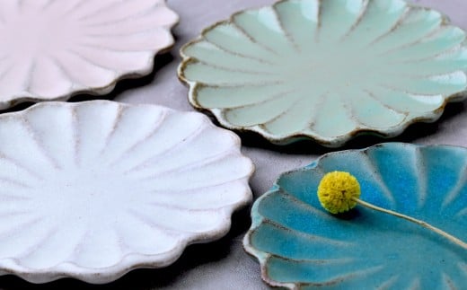 工房とめ お花小皿 11.5cm 4枚セット | 食器 皿 小皿 丸皿 お花小皿 器 うつわ 益子焼 陶芸 栃木県 茂木町