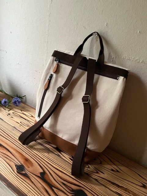 【AKIRAオリジナル】【マツコの知らない世界 で紹介されました!】シンプルリュック 生成り帆布×茶色帆布 軽量 日本製 キャンバス 通勤 通学 大容量 上質 カジュアル オシャレ レディース メンズ リュックサック カバン 鞄 バック