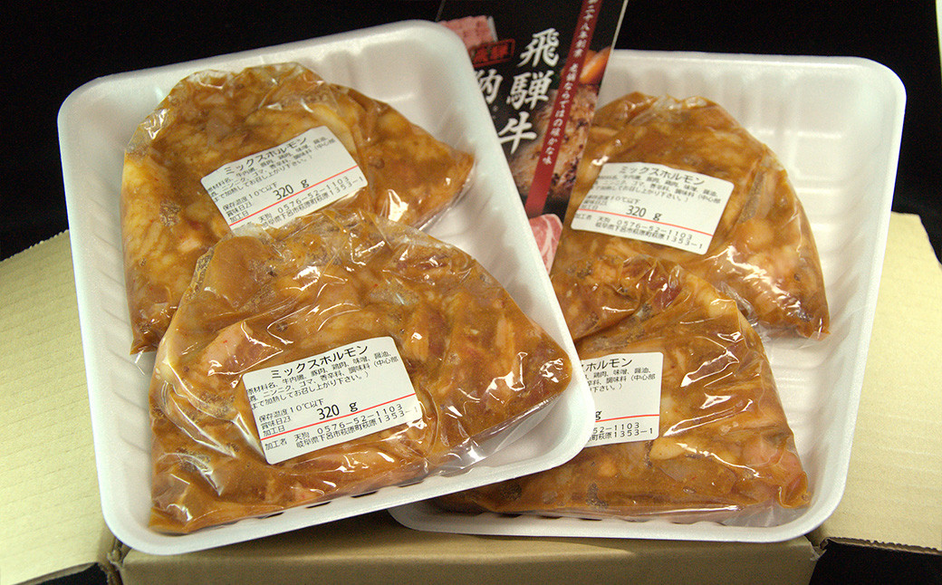 - 飛騨産和牛ホルモン ミックス 320g×4袋 【冷凍】牛肉 牛ホルモン ミックスホルモン みそ味 天狗 無薬鶏 納豆喰豚 なっとく豚 豚肉 無薬鳥 味付き 味付け 下呂市 おすすめ