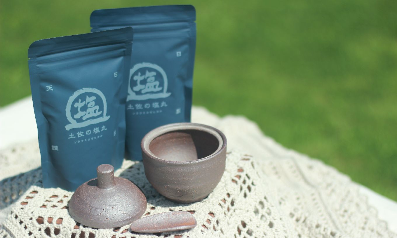 塩壷 塩さじ 天日海塩 青丸 2袋付き セット どんぐりの塩壷 土佐の塩丸 ギフト 贈り物 プレゼント 食器 お皿 陶器 陶芸 調味料入れ キッチン雑貨 塩入れ 塩 調味料 インテリア おしゃれ 高知県 黒潮町 [1617]