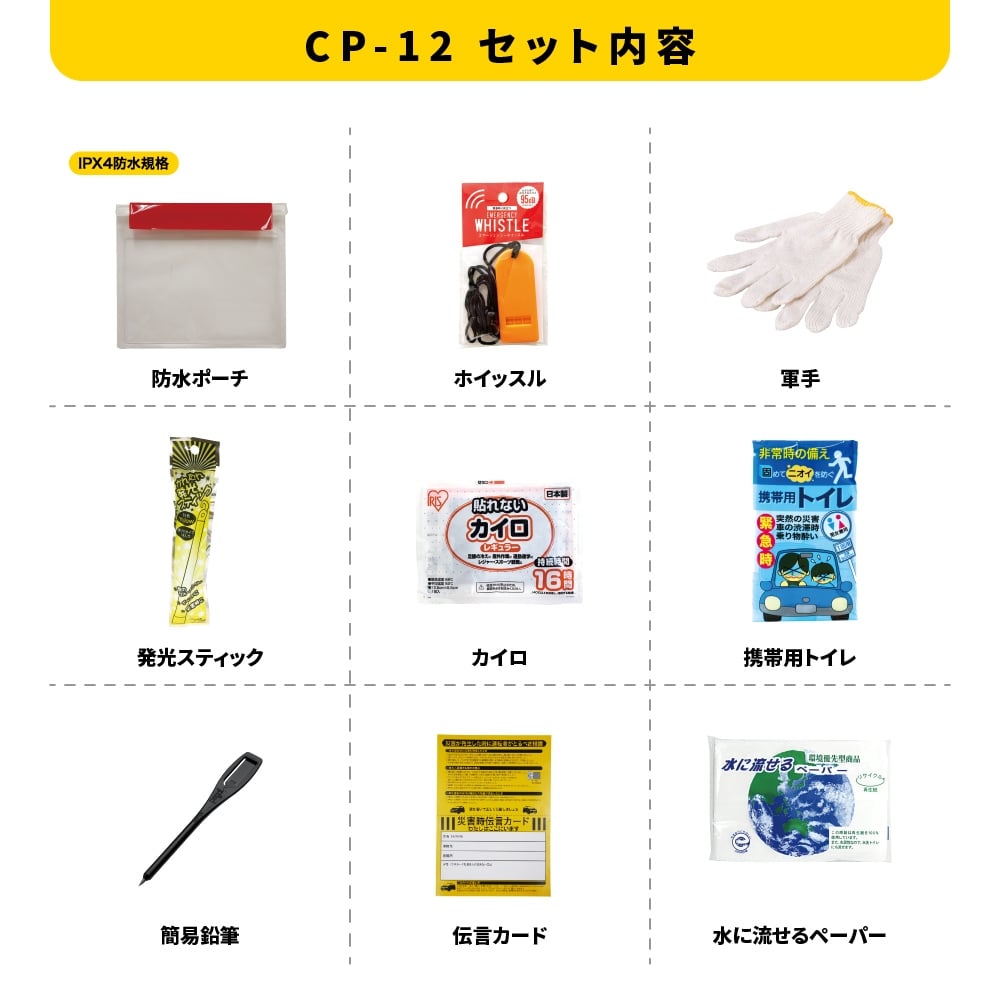 [№5528-0111]車載用防災ポーチ9点セット CP-12 防災セット 石川県 川北町
