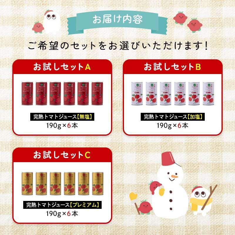 \選べるセット/完熟トマトジュースお試しセットA~C 保存料 無添加 国産 北海道産 とまと 野菜ジュース 美容 健康 ヘルシーDo認定 ESSEふるさとグランプリ銀賞 n-0040var