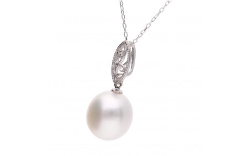 - 【澪標】シロチョウパール(南洋 白蝶真珠) 10mm ショートオーバル ダイヤモンド ペンダントトップ K18 ホワイトゴールド