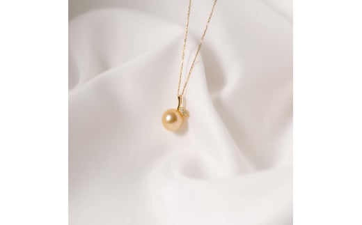- 【姫果】ゴールデンパール(南洋 白蝶真珠) 10mm セミラウンド ダイヤモンド K18 イエローゴールド ペンダントトップ