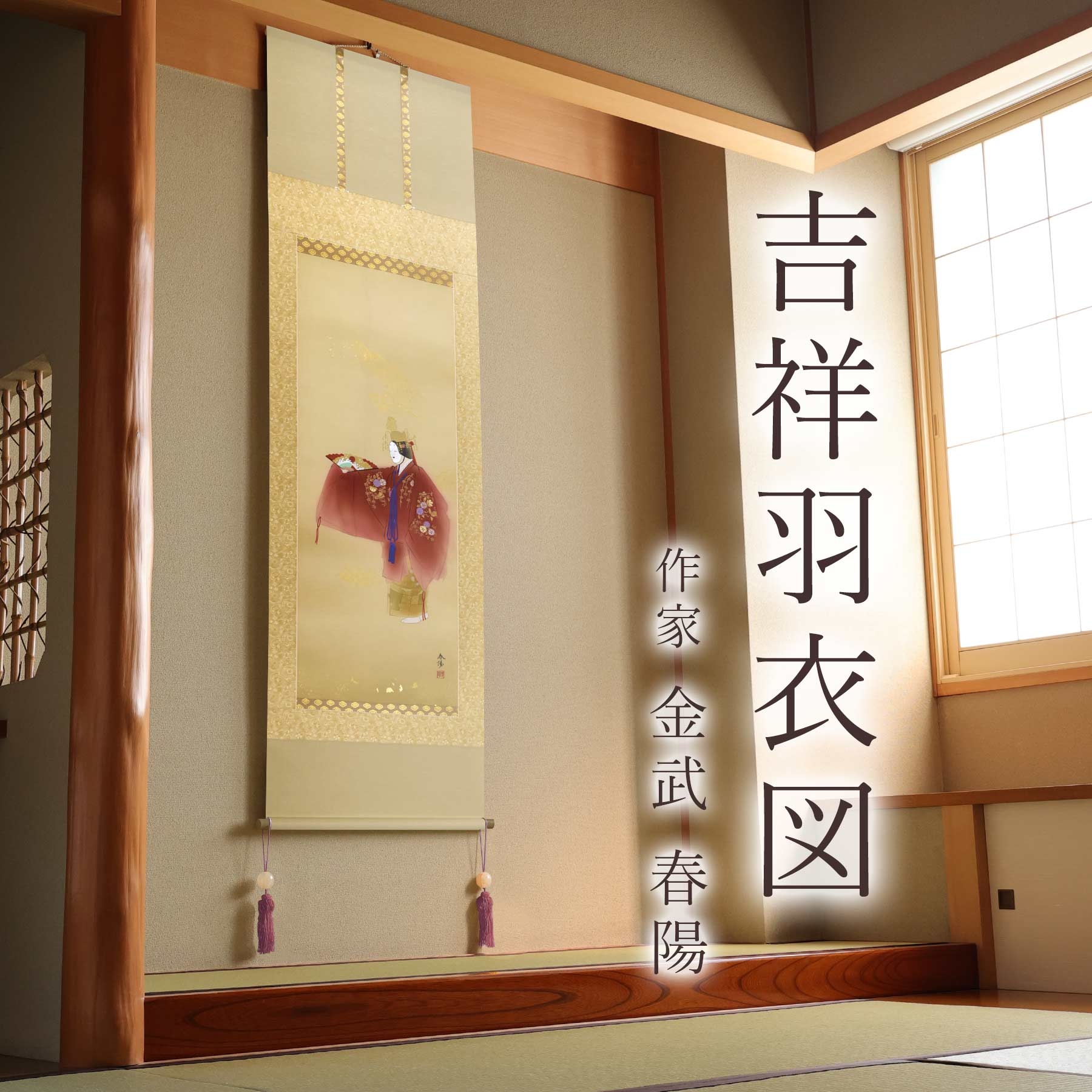 掛け軸「吉祥羽衣図」 金武春陽 尺五立 サイズ:54.5×190cm 桐箱付 掛け軸 和室 おしゃれ 日本画 表装 床の間