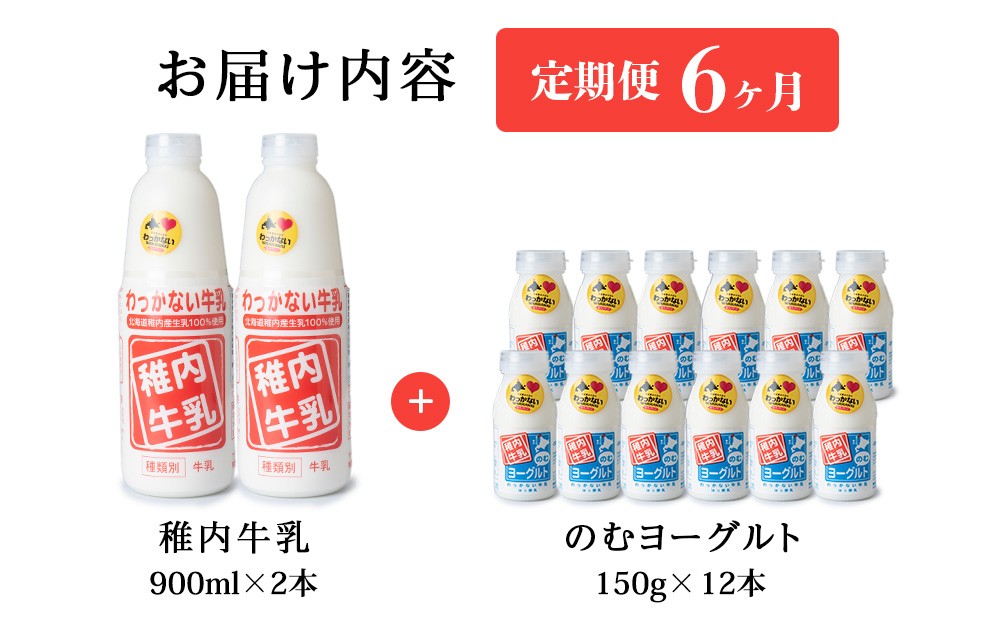 【定期便6ヶ月】稚内牛乳 牛乳&のむヨーグルト 詰め合わせ セット