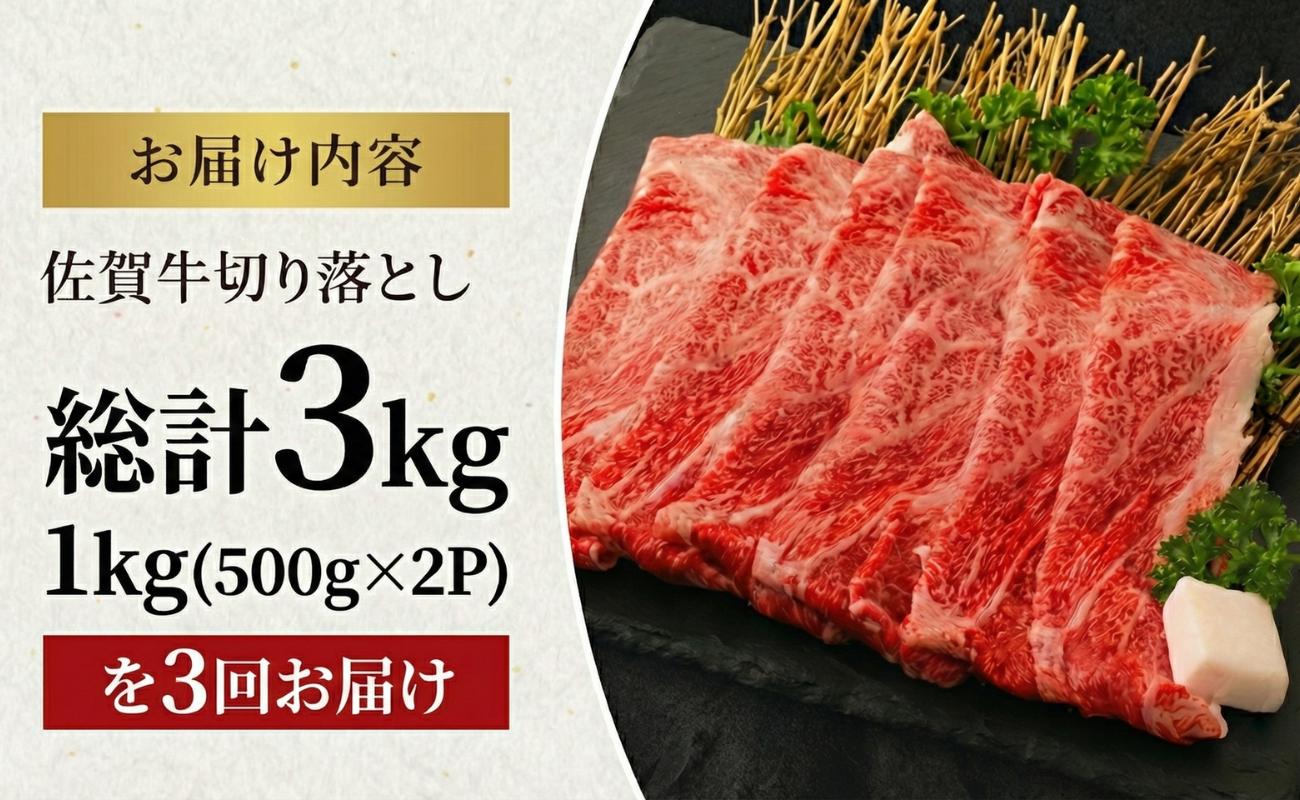 - 【定期便】佐賀牛 切り落とし 1kg (500g×2パック) 3回定期便 牛肉 和牛 小分け 冷凍