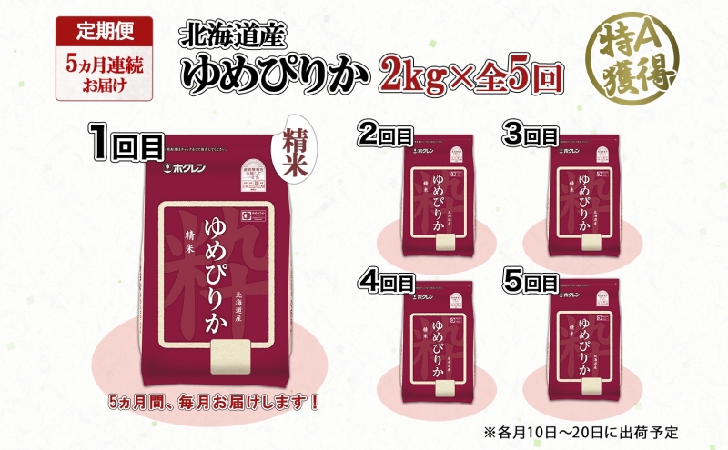 - 定期便 5ヵ月連続5回 北海道産 ゆめぴりか 精米 2kg 米 特A 獲得 白米 お取り寄せ ごはん 道産米 ブランド米 2キロ お米 ご飯 米 北海道米 ようてい農業協同組合 ホクレン 送料無料 北海道 倶知安町