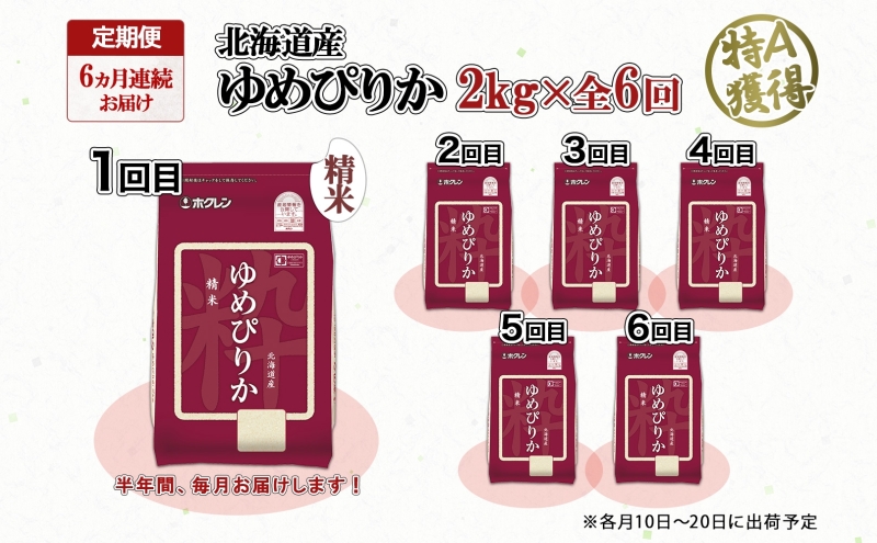- 定期便 6ヵ月連続6回 北海道産 ゆめぴりか 精米 2kg 米 特A 獲得 白米 お取り寄せ ごはん 道産米 ブランド米 2キロ お米 ご飯 米 北海道米 ようてい農業協同組合 ホクレン 送料無料 北海道 倶知安町