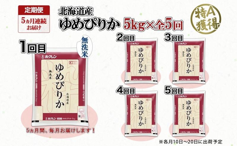 定期便 5ヵ月連続5回 北海道産 ゆめぴりか 無洗米 5kg 米 特A 獲得 白米 お取り寄せ ごはん 道産米 ブランド米 5キロ お米 ご飯 米 北海道米 ようてい農業協同組合 ホクレン 送料無料 北海道 倶知安町 俱知安町