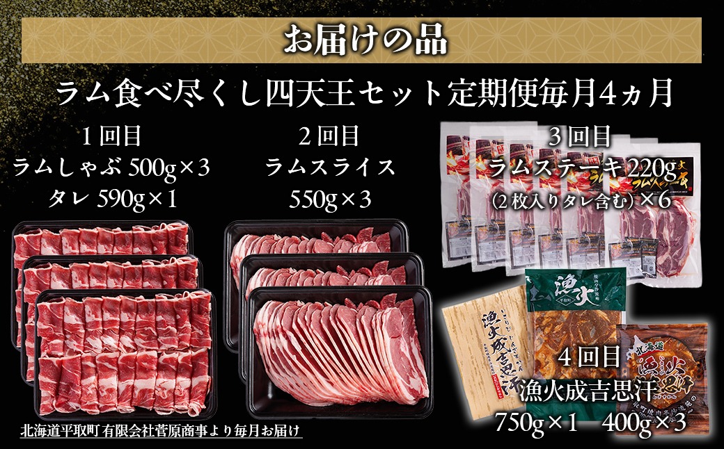 - 【定期便】【食べ比べラム祭り/毎月4ヵ月】ラム食べ尽くし四天王セット BRTI021