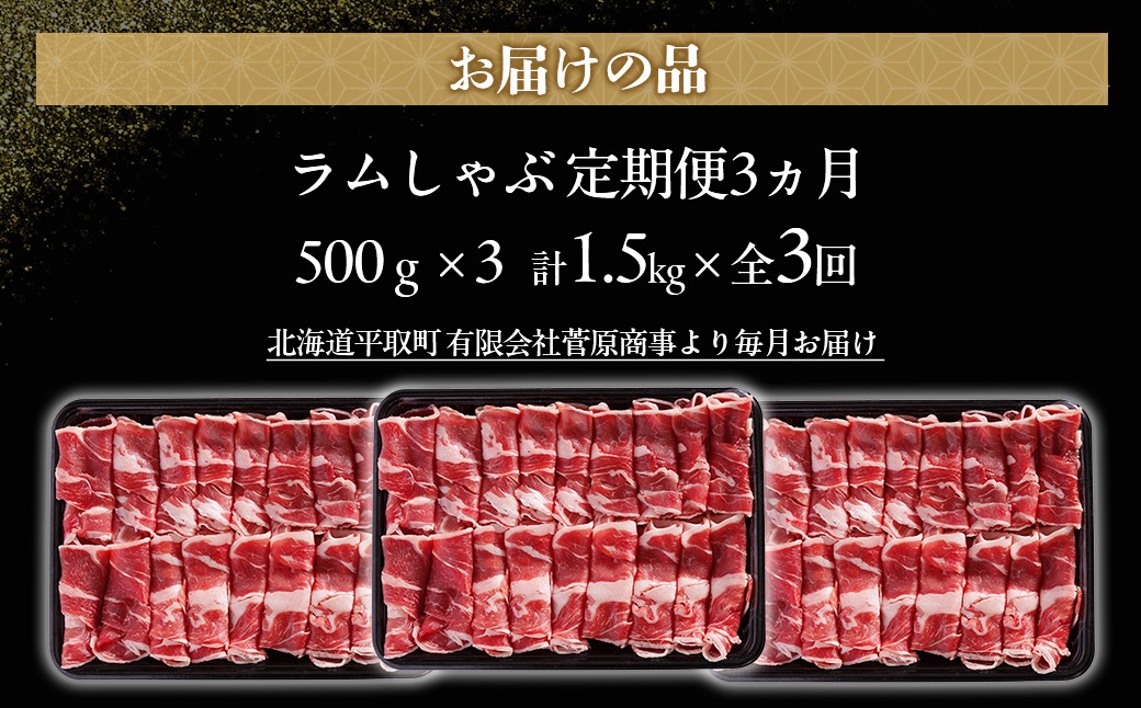 【定期便毎月3ヵ月】北海道民おすすめ『ラムしゃぶ』500g3パック 1.5kg×3ヵ月 BRTI022