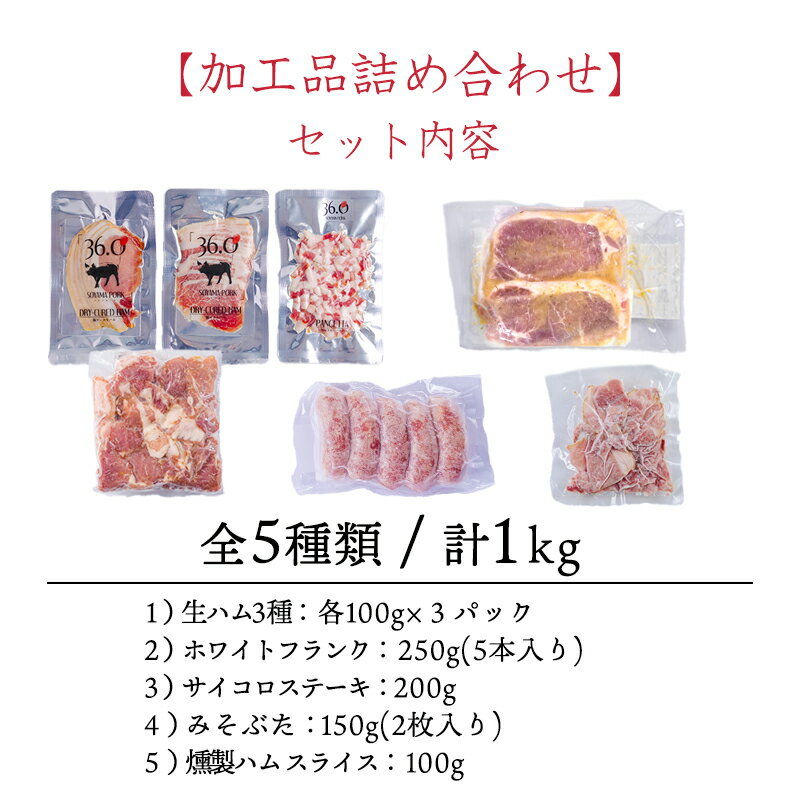 - 【ふるさと納税】ソヤマポークの加工品詰め合わせ 5種類 計1kg 小分け セット 口の中ですっと溶けていく上質な脂 溢れだす旨味と甘味 豚肉 日々の献立やお弁当にもぴったり 国産 宮崎県 高原町 送料無料 13000円