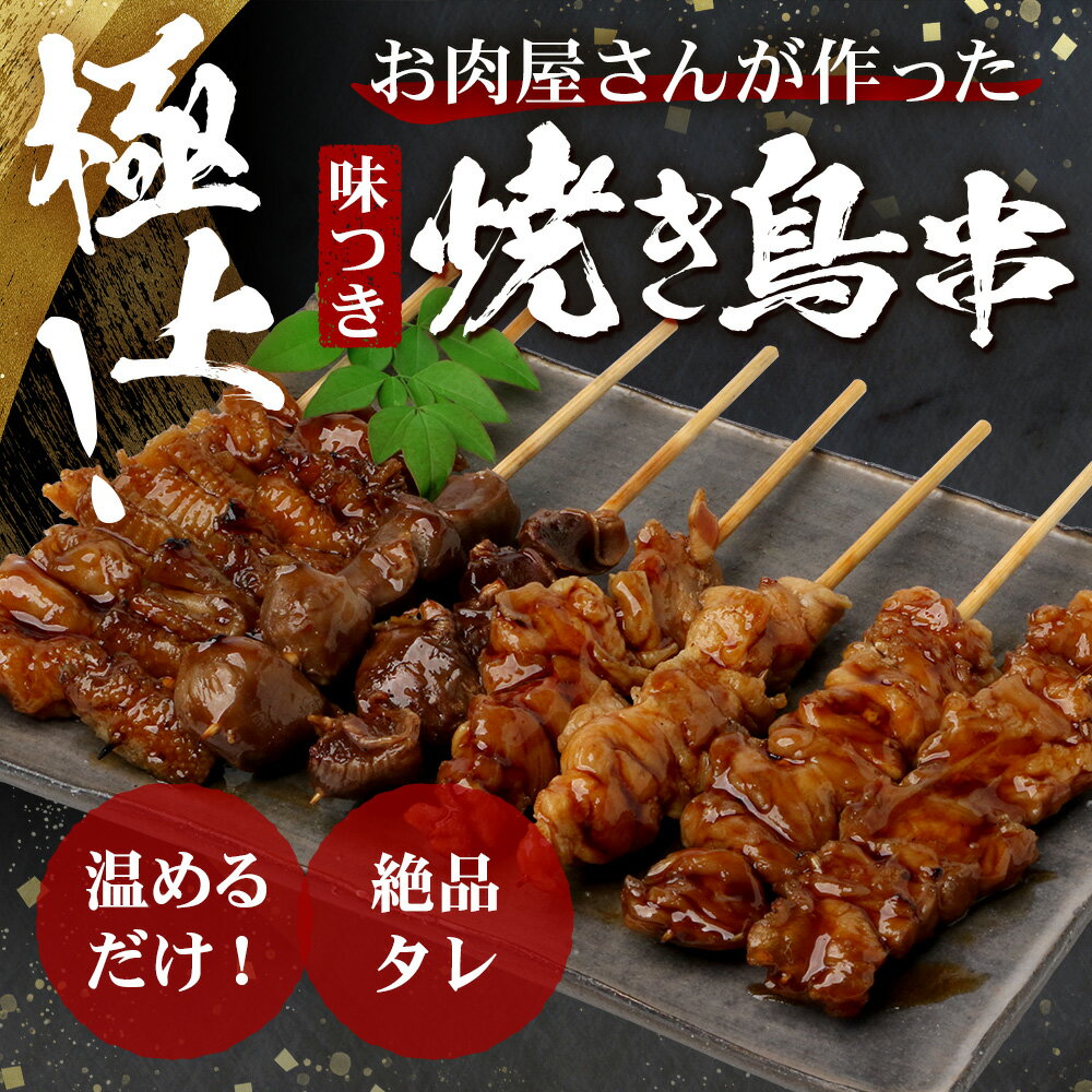 【ふるさと納税】温めるだけ!お肉屋さんの 味付き 焼き鳥 串 8本~64本 (タレ込み 250g ~ 2kg ) 焼きとり 焼鳥 鶏 モモ せせり 皮 砂肝 レンチン 電子レンジ 肉 冷凍 真空パック 8本 16本 24本 32本 48本 64本 アウトドア 選べる 量 月 おつまみ 惣菜 簡単 冷凍 送料無料