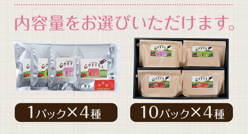 - 【ふるさと納税】ドリップ 珈琲 セット 4種 選べる 内容量 4パック 40パック 社会福祉法人やまなみ会 インターワーク《30日以内に出荷予定(土日祝除く)》熊本県 産山村 自家焙煎 飲み物 コーヒー 珈琲 ドリップ ドリップバッグ