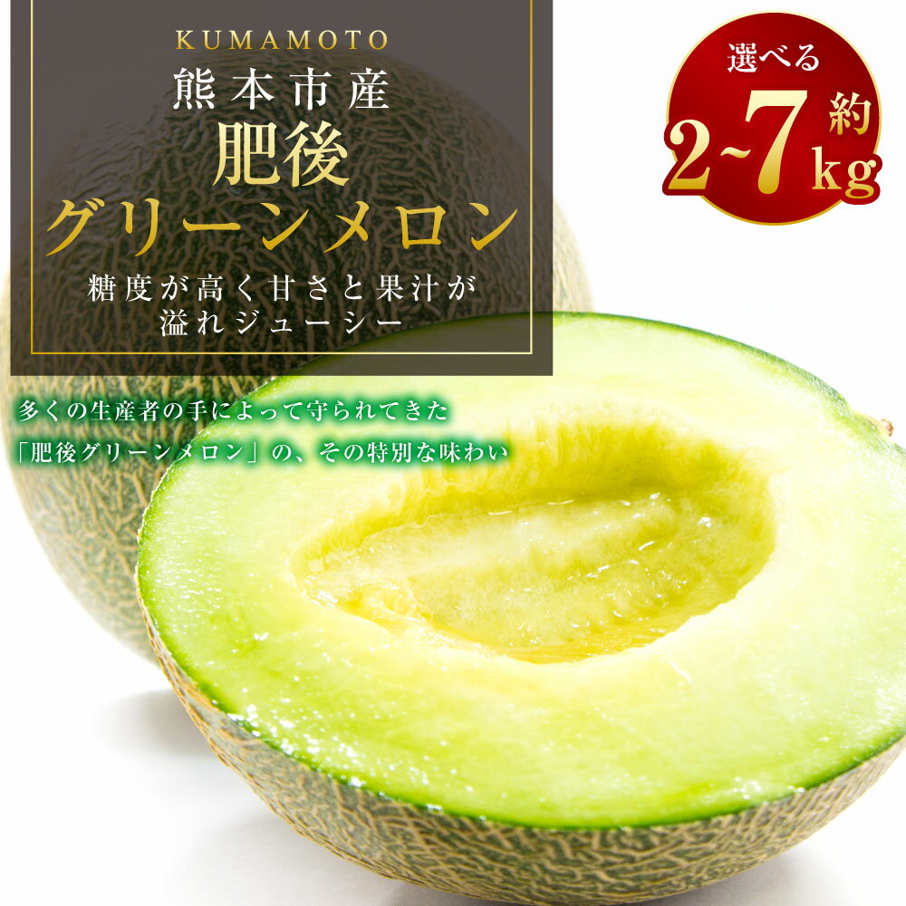 【ふるさと納税】<選べる内容量>熊本市産 肥後グリーンメロン 約2kg(1玉4L以上) / 約4kg(2玉4L以上) / 約7kg(4~6玉 L以上) 青肉 メロン めろん 高級 くだもの 果物 果実 フルーツ 熊本県産 国産 九州 熊本県 送料無料 【2026年4月下旬発送開始】