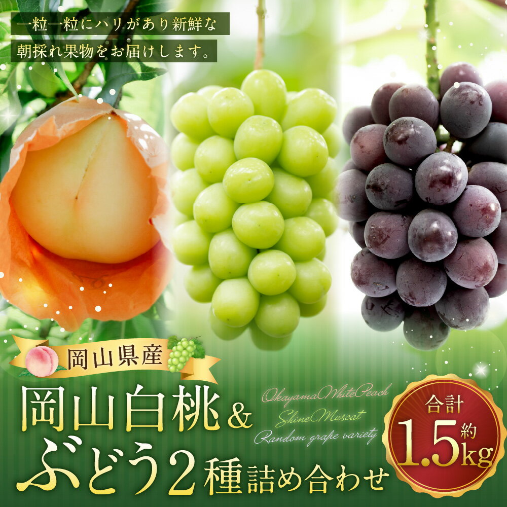 - 【ふるさと納税】岡山白桃(2~3玉)&シャインマスカット&黒系ぶどう(1.5kg以上)の詰め合わせ セット マスカット ぶどう ブドウ 葡萄 桃 もも モモ くだもの 果物 果実 フルーツ 冷蔵 岡山県産 国産 岡山県 美咲町 送料無料 【2026年8月上旬から8月下旬頃発送予定】
