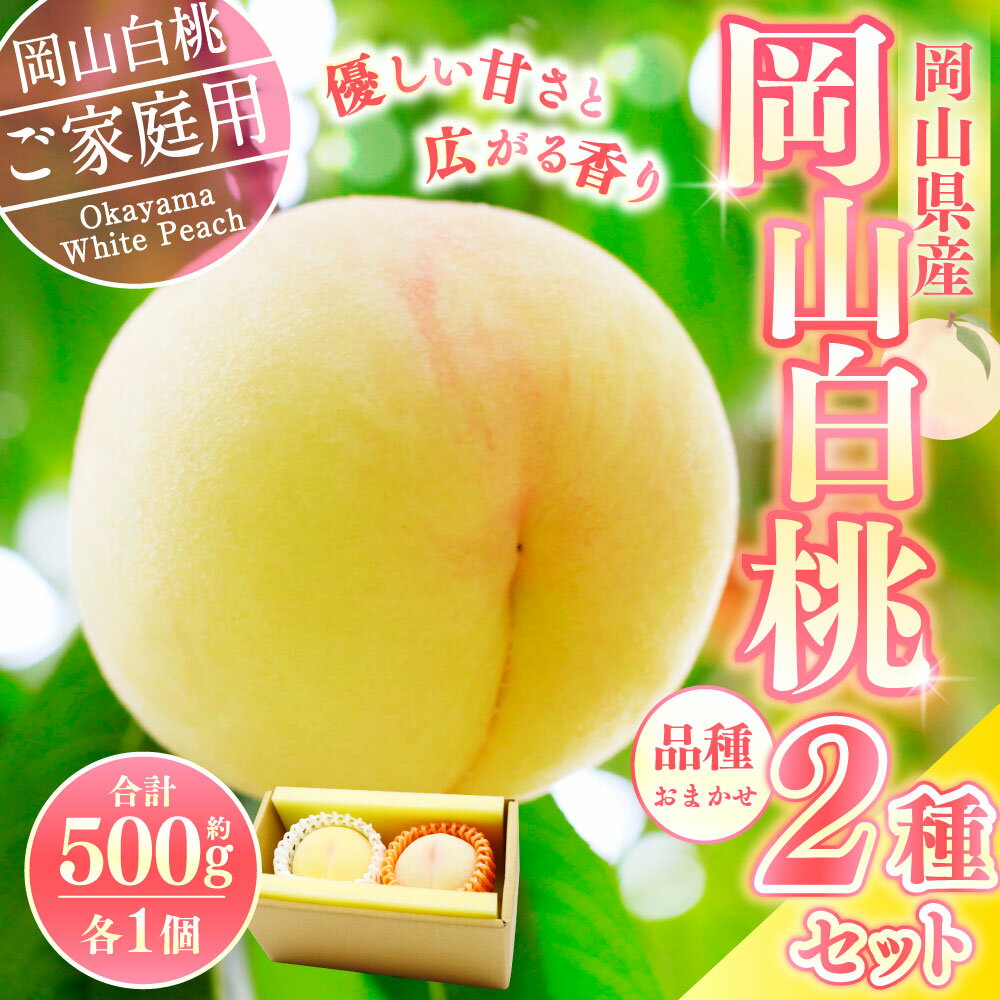 - 【ふるさと納税】【 ご 家庭用 】 岡山 白桃 2種2玉 500g ( 計 1kg ) 【2026年7月上旬から9月上旬頃発送予定】果物 くだもの フルーツ もも 桃 甘い 香り 柔らかい ジューシー 美味しい 岡山県 美咲町 送料無料