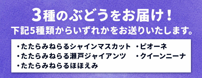 【ふるさと納税】ぶどう3種類おまかせセット たたらみねらるシャインマスカット たたらみねらる瀬戸ジャイアンツ たたらみねらるほほえみ ピオーネ クイーンニーナ Y&Gディストリビューター株式会社 岡山県 笠岡市《9月上旬-10月下旬頃出荷(土日祝除く)》
