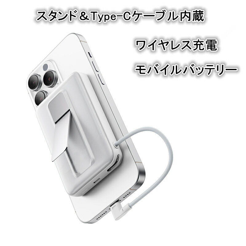 - 【ふるさと納税】モバイルバッテリー 薄型 軽量 小型 白 USB Type-C 10000mAh ワイヤレス 有線 2台以上同時充電 MagSafe対応 スタンド付き 携帯 スマートフォン スマホ タブレット 充電器 ワイヤレス充電器 モバイル バッテリー 日本国内 海外兼用 大阪府 泉佐野市 送料無料