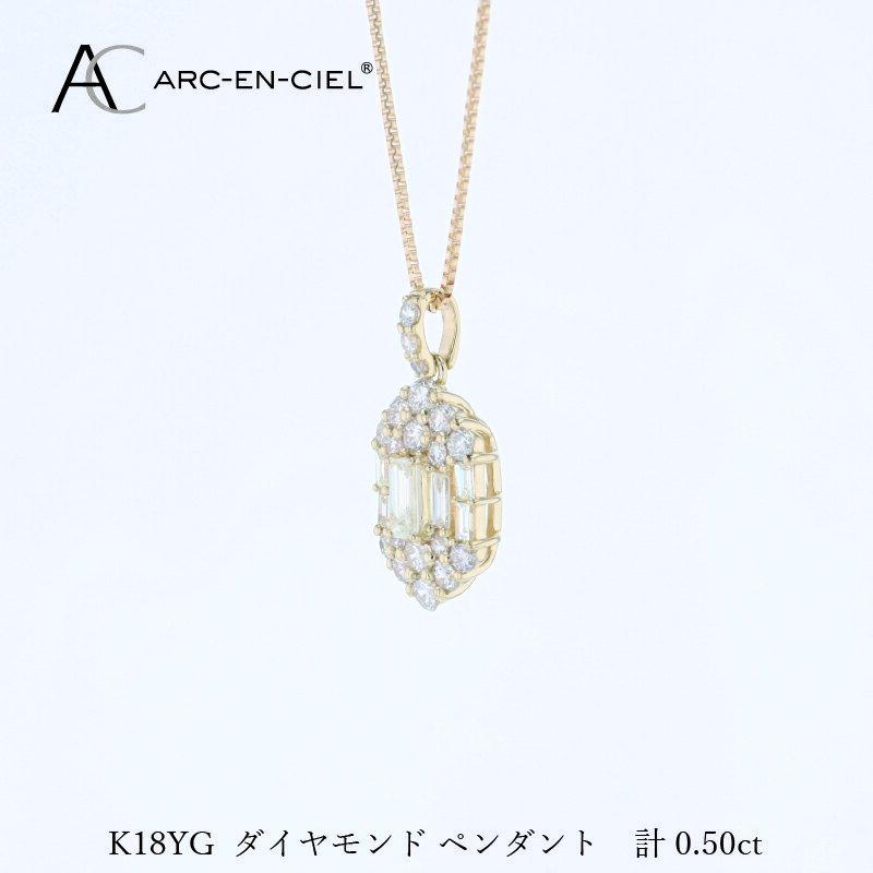 【ふるさと納税】アルカンシェル K18YG ダイヤペンダント 計 0.50ct イエローゴールド 長さ調整付きチェーン ベネチアンチェーン ペンダント ネックレス ダイヤ ダイヤモンド 天然ダイヤモンド 金 18金 K18 ジュエリー アクセサリー レディース 大阪府 泉佐野市 送料無料