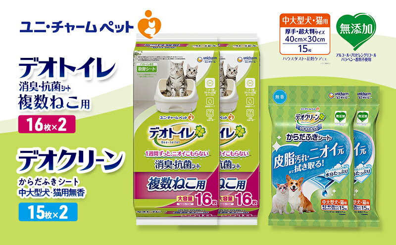 【ふるさと納税】デオトイレ 複数ねこ用 消臭・抗菌 シート 16枚×2 デオクリーン からだふきシート 中大型犬・猫用 無香 15枚×2 ペットシーツ ペットシート トイレ 猫 猫用トイレ ペット 清潔 ユニ・チャーム お届け:通常ご寄附頂いてから約1~2ヶ月以内に発送
