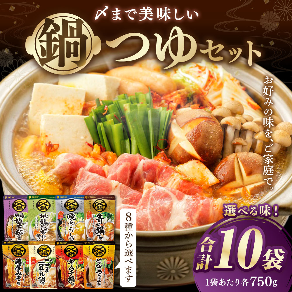 【ふるさと納税】ミツカン mizkan 〆まで美味しい 鍋つゆ 自由に選べる ( 10袋 ) セット 1袋750g 地鶏塩ちゃんこ鍋つゆ 地鶏昆布だし 焼あごだし鍋つゆ 寄せ鍋つゆ 濃厚みそ鍋つゆ ごま豆乳鍋つゆ キムチ鍋つゆ とんこつしょうゆ鍋つゆ 鍋の素 お鍋 鍋料理 送料無料