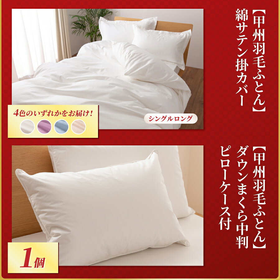 - 【ふるさと納税】 福袋 甲州羽毛ふとん 寝具 セット 掛け布団 本掛け シングル 掛ふとんカバー SL 中判 ダウンまくら ピロケース付き おまかせカラー ホワイトダックダウン85% 日本製 布団 カバー 枕 3点セット 人気 快眠 プレミアムセットA 【甲州羽毛ふとん】