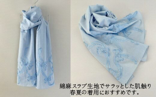 - 【ふるさと納税】 ストール ブルーリボンストール 華やかなコード刺繍 | 日本製 レディース おしゃれ シンプル マフラー 春夏 春 夏 プレゼントギフト 母の日 新潟県 五泉市 有限会社田中刺繍