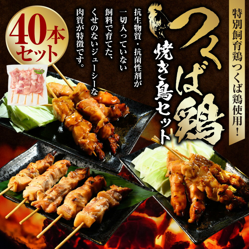 【ふるさと納税】つくば鶏 焼き鳥セット 40本 焼き鳥 焼鳥 肉 お肉 おかず 惣菜 もも肉 ネギま ネギ間 鶏皮 つくね 串 串焼き 食べ比べ セット 冷凍 茨城県 守谷市 送料無料