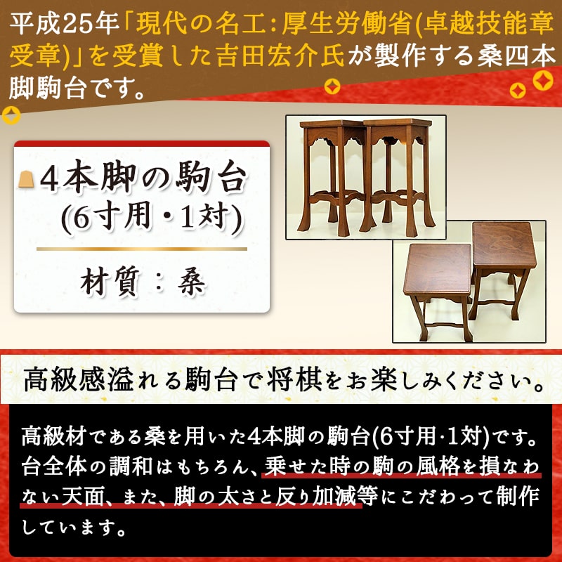 【ふるさと納税】 桑 四本足 駒台 ( 6寸 用 ) 将棋 現代の名工 卓越技能章受章 受賞 吉田宏介 伝統工芸 1対 のし 贈答 お祝い 贈り物 ギフト 送料無料 天童市観光物産協会 【 山形県 天童市 】