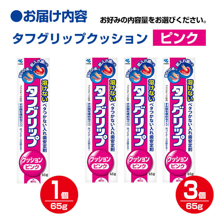 - 【ふるさと納税】タフグリップクッション ピンク 65g 選べる容量 1個・3個 小林製薬 入れ歯安定剤 入れ歯 義歯 オーラルケア 歯 衛生用品 日用品 口腔ケア 口内清潔 歯の健康【CGC】ta589・ta590