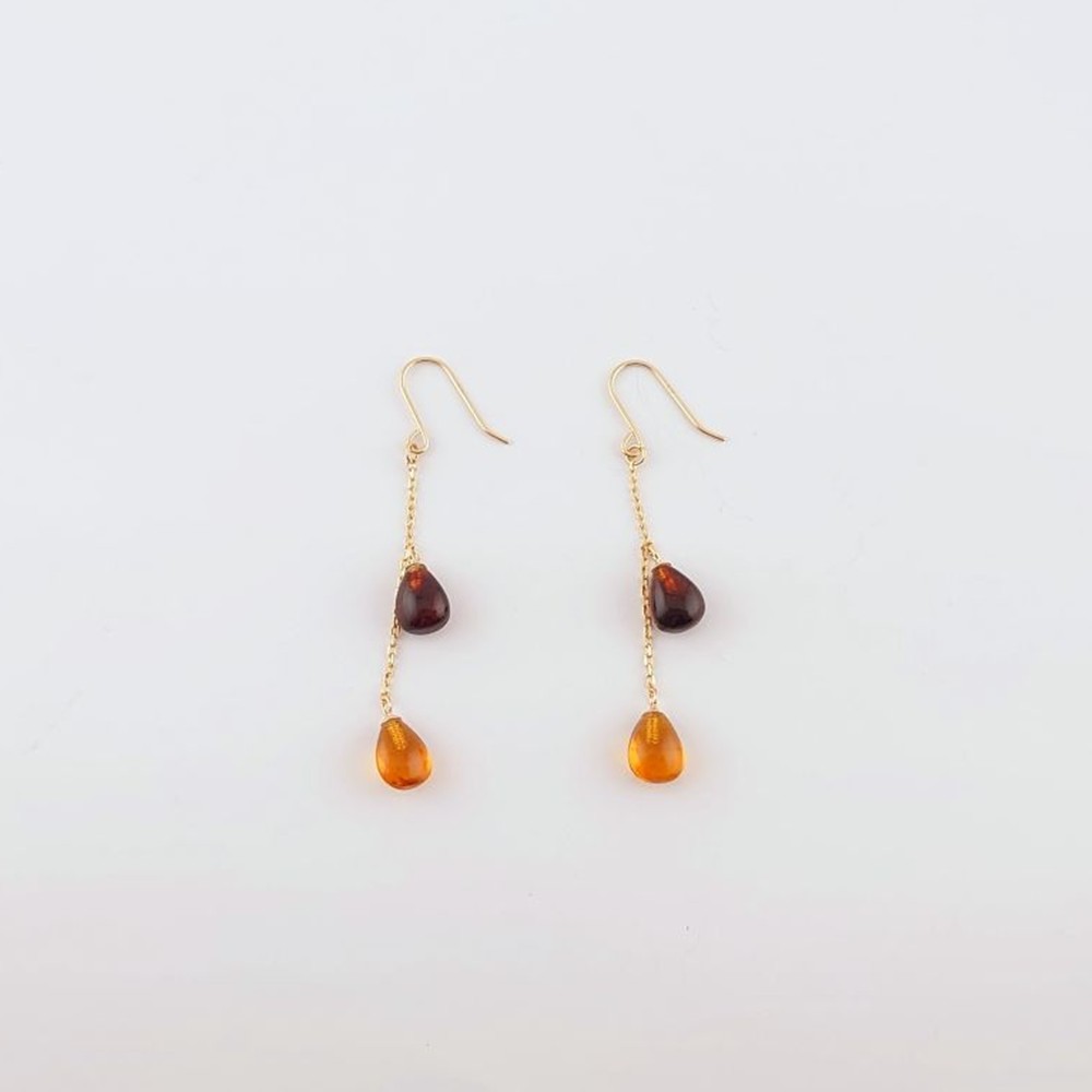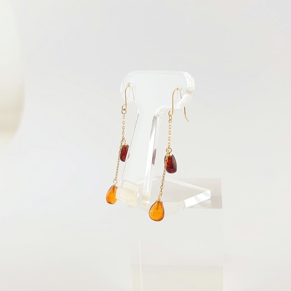 - 【ふるさと納税】Amberlogue ピアス しずく(金属素材:K10 琥珀:直径6.5×5×3mm サイズ:全長35mm)