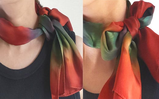 - 【ふるさと納税】 染物 スカーフ 八幡平GEOCOLOR シルク ミニスカーフ 100S レンガ系 / 地熱染め 染め物 染色 手絞り 手染め シルク100% シルクスカーフ ファッション 赤系 小物 雑貨 おしゃれ きれいめ 首 首元 春夏秋冬 ジオカラー おすすめ 岩手県 八幡平市 送料無料
