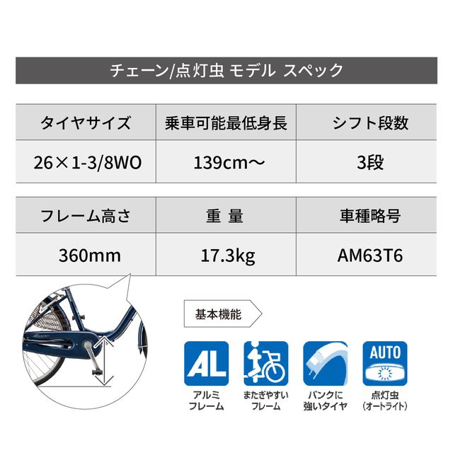- 【ふるさと納税】自転車 アルミーユ ブリヂストン 【AM63T6】 26インチ 3段変速 オートライト モデル【EXモルベージュ/ツケ消しTXサファイヤブルー】 | 自転車 日常 買い物用 乗りやすい お買い物 安全 おしゃれ ブリジストン ブリヂストンサイクル 埼玉県 上尾市