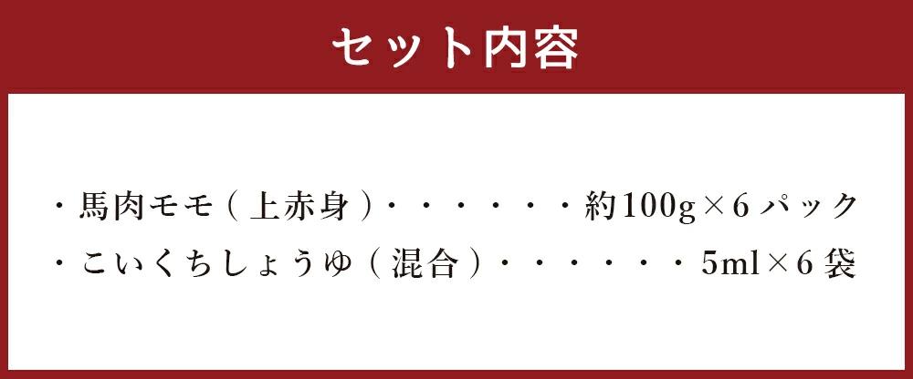 - 熊本 馬刺し 上赤身 詰め合わせ 約600g (約100g×6パック) 醤油付き 赤身 馬肉 馬刺 真空パック 小分け