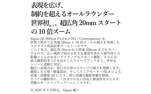 - SIGMA 20-200mm F3.5-6.3 DG | Contemporary【Lマウント】