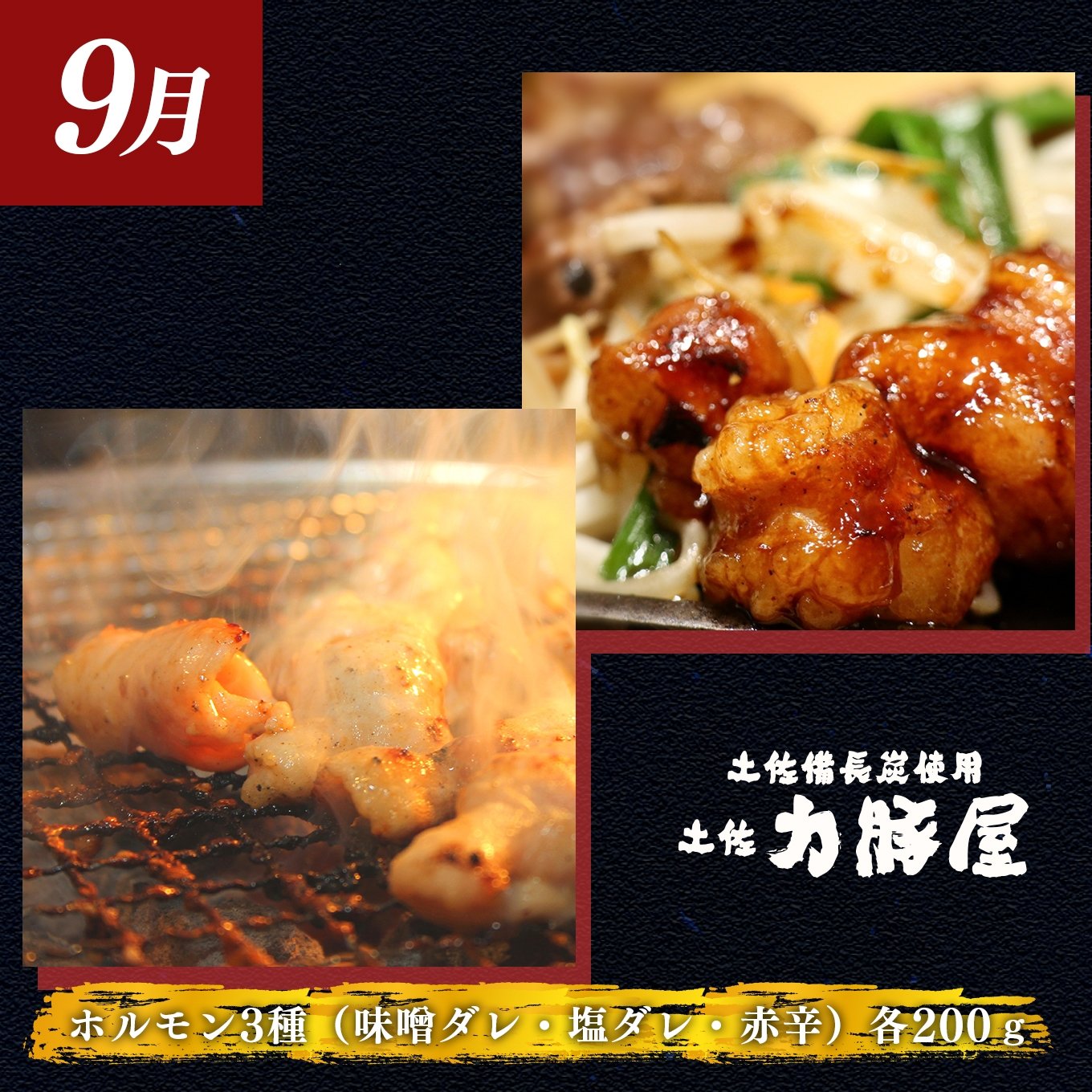 【定期便 3回】豚肉 ハラミ ホルモン キムチ 国産 焼肉用 7~9月|ブランド豚 真空パック 炒め物 おかず おつまみ お弁当 おすすめ 贈答用 家庭用 チャンジャ キムチ 珍味 BBQ 小分け 個包装 土佐力豚屋 高知県 大月町