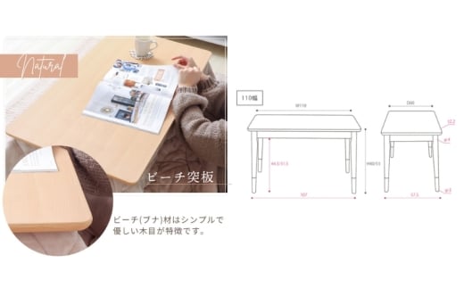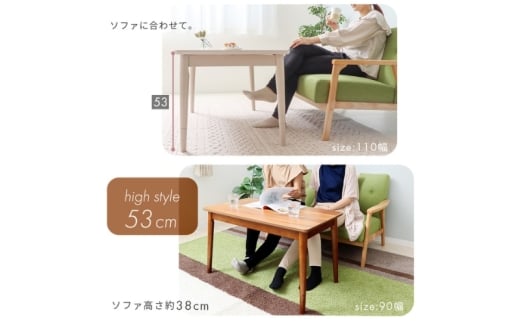 ハイタイプ継脚こたつテーブル Cilla(シーラ) 110幅 ベージュ