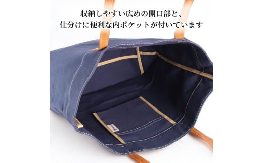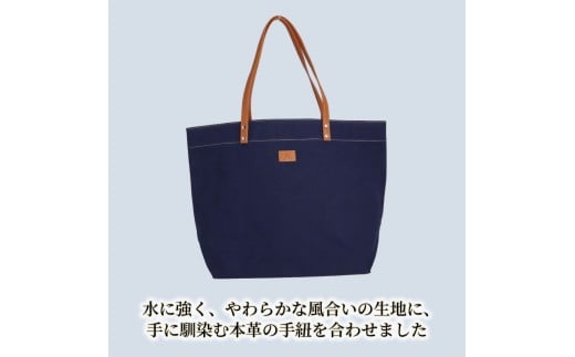 - 日本製 トート 大サイズ ネイビー ( パラフィン帆布 ) 牛革 トートバック 小型 手持ち カバン 鞄 本革 天然皮革製品 カラー オリジナル ブランド カジュアル シンプル 小物 雑貨 工芸品 日常使い ハンドメイド ウォッシュ加工 パラフィン 帆布 パラフィン加工 送料無料 縫製 国産 自社工房 千葉県 旭市 髙野縫製 高野縫製 ぬいざえもん ths027